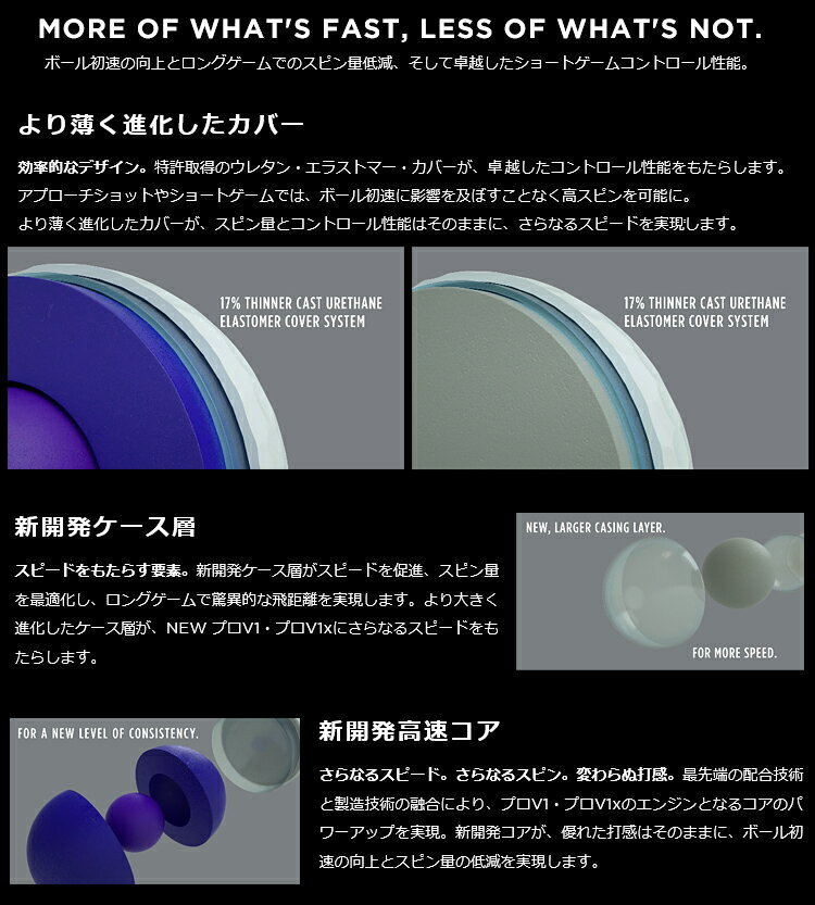 NEW タイトリスト プロV1・プロV1xは、ボール初速の向上とロングゲームでのスピン量低減を実現。