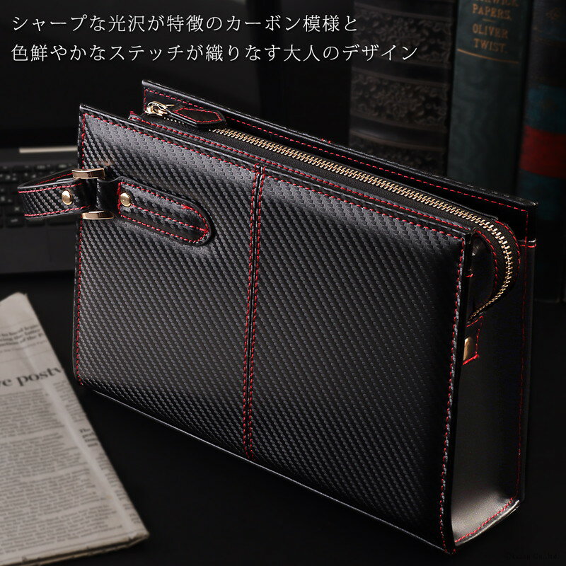 セカンドバッグ メンズ ブランド カーボン加工レザーを使用した高級感のあるクラッチバッグ MG-1932 男性用 Merge マージ シンプル かっこいい 合成皮革 大容量 機能的 軽量 冠婚葬祭 おしゃれ 贈り物 送料無料 送料込み プレゼント ギフト SP09